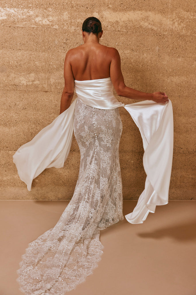 Amandine is more than a gown—she’s a feeling, a statement, and a timeless expression of love. Designed with soul and passion—an integral part of Grace Loves Lace's brand DNA—this boho wedding dress is a true reflection of our commitment to artistry and craftsmanship.