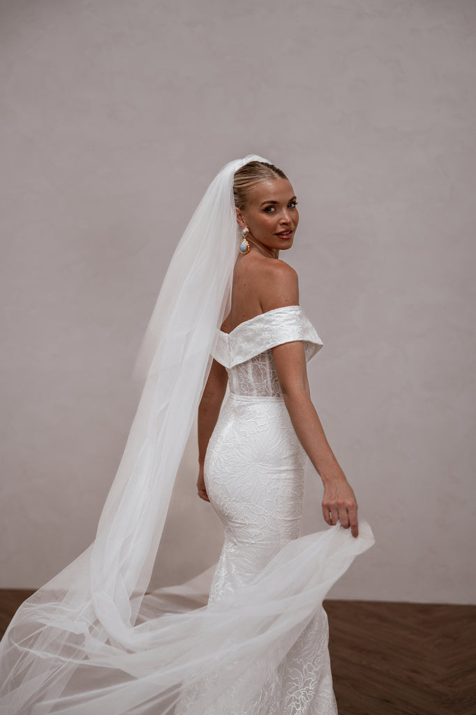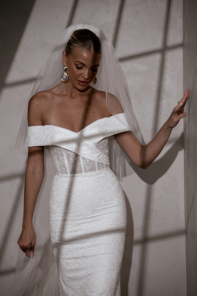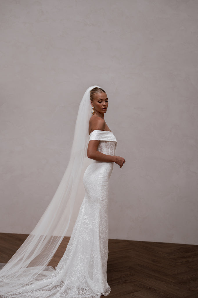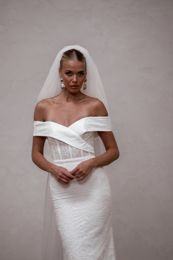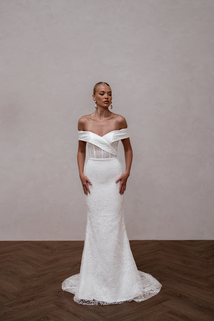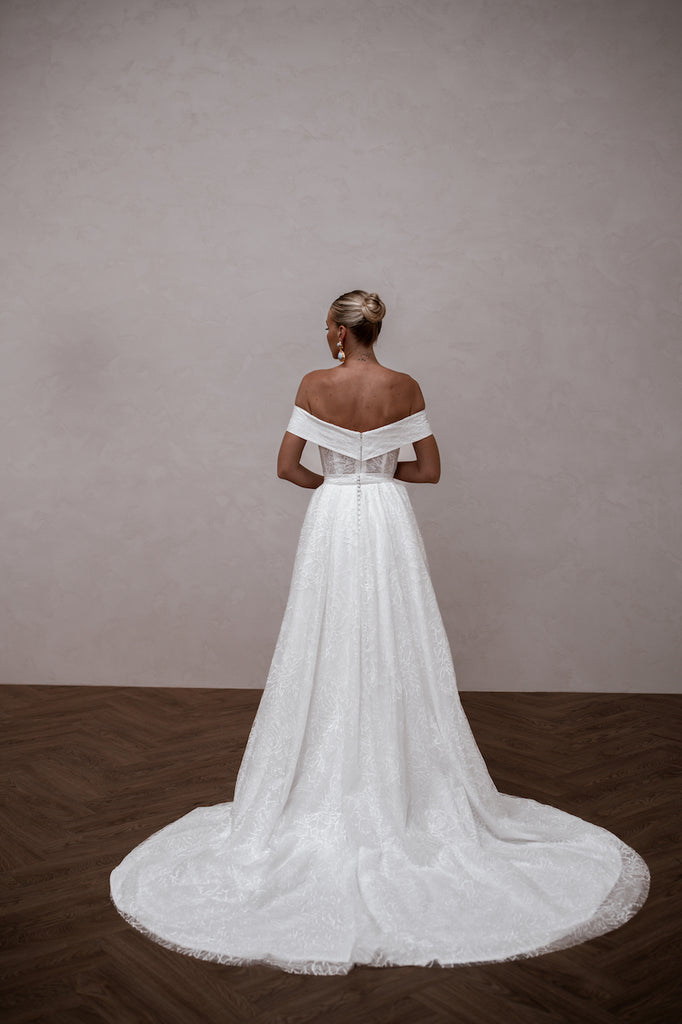 Most gowns can be sized down 2 sizes and may be able to be sized up. This bridal dress is a sample and may have minor wear from being tried on in our studio if not specified above. Please ensure you are happy with the condition before purchasing as all sales are final with no refunds, exchanges, or returns. We cannot hold any gowns for future purchase and full payment is required.