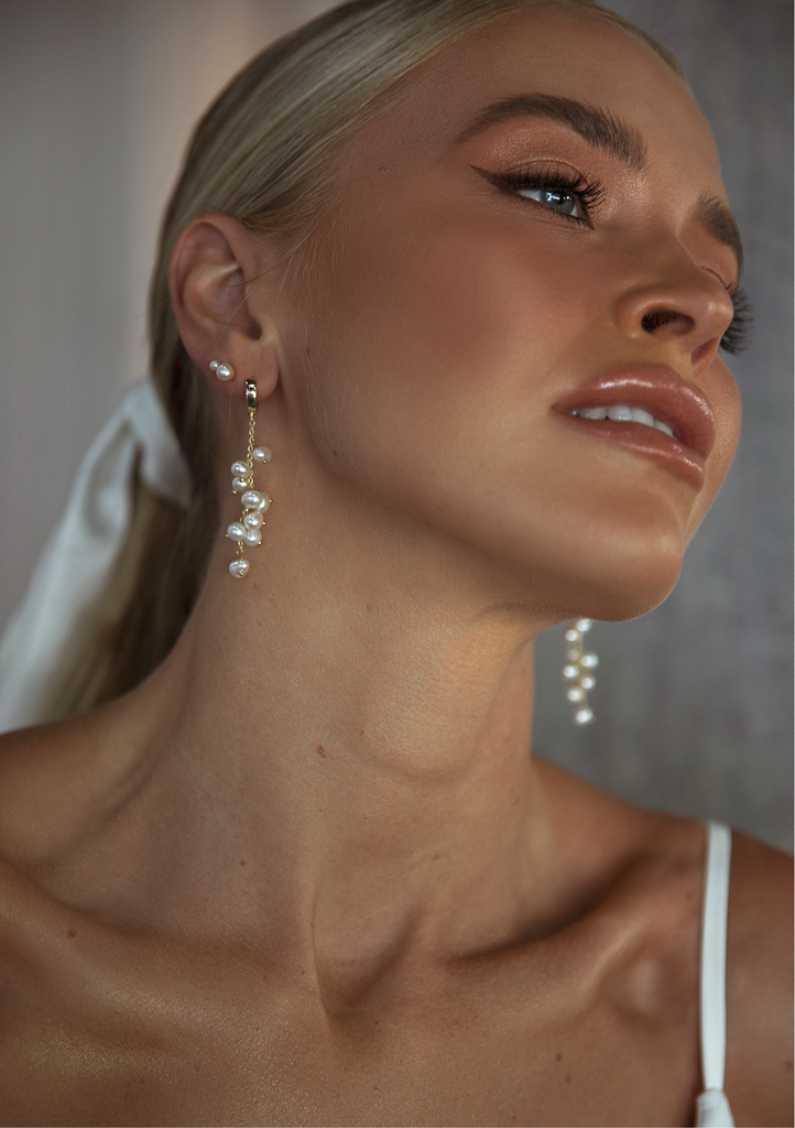 The Maree earrings are handcrafted from sterling silver and coated in 18ct gold or silver plating. This design is delicate and elegant and features freshwater pearls making them the ideal pair of earrings to achieve a minimal chic look.