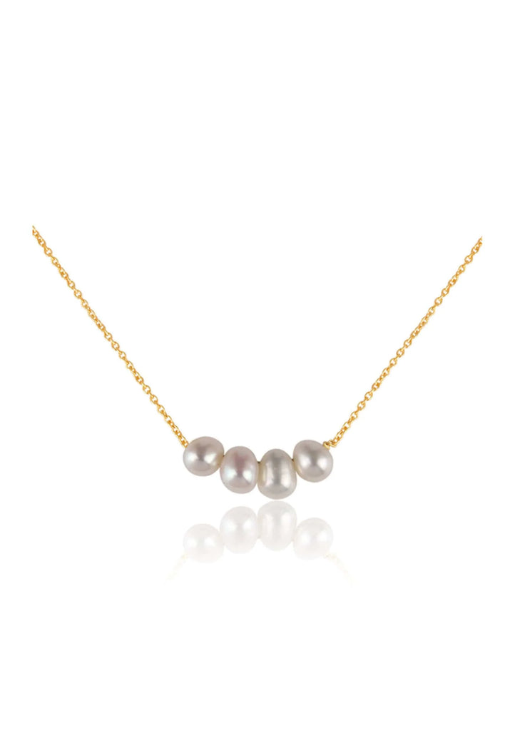 The Poppy necklace is made from sterling silver and coated in gold plated, the design features 4 freshwater oval pearls. This necklace is elegant and modern and is the perfect addition to your wedding day look.