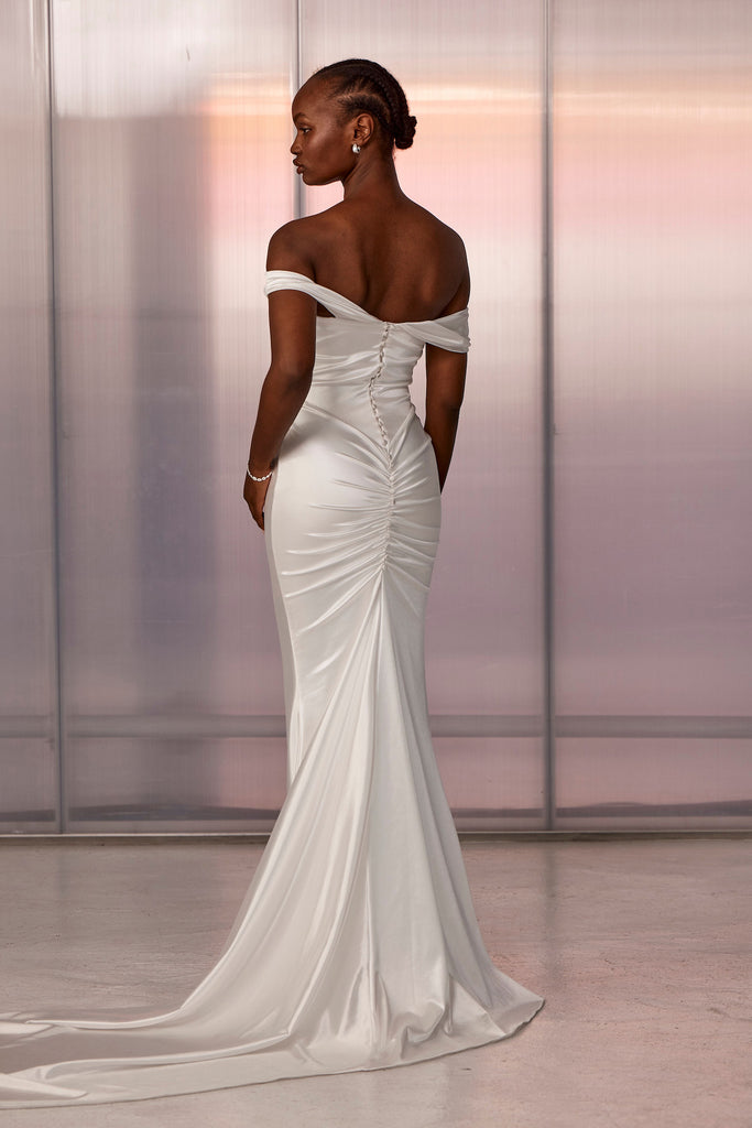 Condition: Excellent Condition. This gown is made in a stretch fabric so can fit a range of sizes.