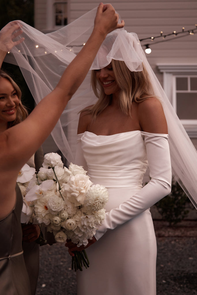 Most gowns can be sized down 2 sizes and may be able to be sized up. This bridal dress is a sample and may have minor wear from being tried on in our studio if not specified above. Dry cleaning may be recommended. Please ensure you are happy with the condition before purchasing as all sales are final with no refunds, exchanges, or returns. We cannot hold any gowns for future purchase and full payment is required.